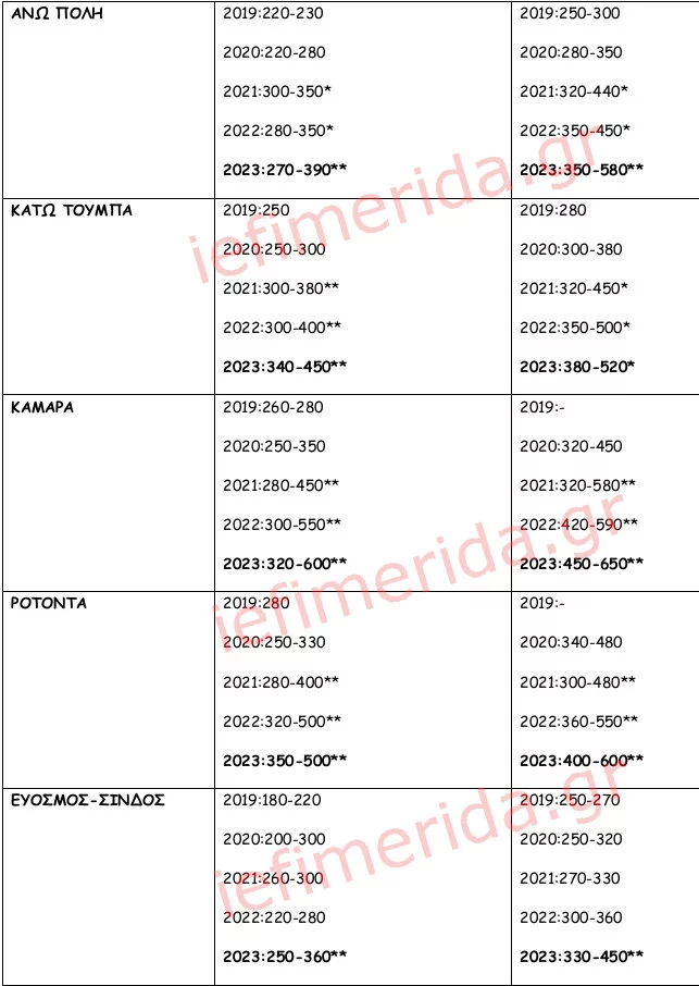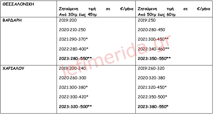 Χαρτογράφηση των ζητούμενων μισθωμάτων σε 7 περιοχές της Θεσσαλονίκης